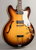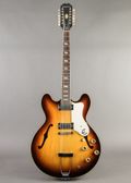 This 1967 Riviera E360-12 is a fully original example of some of Epiphone's finest work finished in sunburst. A healthy competitor to the Rickenbacker flavor, the double-cutaway, semi-hollow body is paired with a slim neck and 12-string configuration, delivering the chime and natural compression associated with the model. It retains its original mini humbuckers, hardware, plastics, and electronics, all showing their graceful age. The finish presents well with expected light wear, and it includes the original hardshell case.