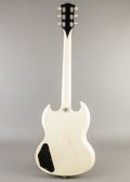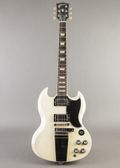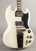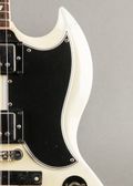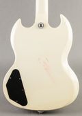 This 2007 SG is a premium Custom Shop take on the Gibson classic, finished in Polaris White and outfitted with a Maestro tailpiece. The black headstock stinger immediately sets it apart as an eye-catching rock-and-roll machine. The ever-classic Seymour Duncan Seth Lover pickups provide a pleasing take on the PAF sound, with modest output that suits a wide range of styles. The neck has a slim-to-medium D profile that sits very comfortably in the hand. Cosmetically, there is some finish wear on the front and back, along with a few small dings and light finish checking.