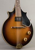 Gibson’s solidbody electric mandolin introduced in 1954 at the height of their electric-instrument renaissance. It has a carved and bound top, sunburst finish, and solid mahogany body, the Florentine Electric Mandolin clearly echoes the aesthetics of a Les Paul, and a compact 4-pole P-90–style pickup. Although these early EM-200s weren’t given serial numbers, the features on this one place it around 1955. Its electronics remain original, along with the single-line Kluson Deluxe tuners. This example is exceptionally clean and complete, right down to the original Lifton case.