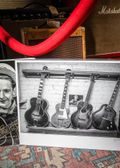 This 1928 Gibson L-3, once owned and played by Les Paul during his early career as "Rhubarb Red," is a deeply historic instrument with unmistakable character and provenance. The guitar shows significant signs of age and use, with a missing pickguard and missing bass-side fingerboard binding. There are a few cracks on the heel and body sides, as well as a slight refinished area around the neck joint and heel. The top also shows a few small holes on the lower bass bout side from heavy play and wear. Still, the original bridge, tailpiece, frets, and tuners remain intact, and it comes with exceptional documentation, including the Julien’s Auctions Les Paul book and multiple magazine issues featuring Les on the cover. A rare and meaningful piece that reflects both a pivotal era in Les Paul's early musical life and his devotion to the Gibson brand. Comes with a HSC, Showcase, photos, and COA.