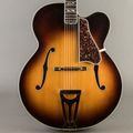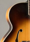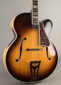 Gibson set the standard for "Top of the line" with the Super 400. Initially introduced in 1934, the Super 400 was a luxurious model in its function as an instrument as well as its visual appeal. There are elements of excellence that serve the instrument, like its carved spruce top and beautiful maple back and sides selected from premium materials, and elements that serve the player. The aspects of the guitar that serve the player are intentional details like the pearl inlay on the back of the headstock, art deco tailpiece, adjustable bridge and beautiful fretboard inlays. The guitar is a stunning presence because of its appointments as well as its overall size. This Super 400, formerly owned by Jimmy Atkins (brother of Chet Atkins), is a remarkable archtop with smooth, resonant projection. It remains in excellent condition, showing only minor wear, including light finish abrasions and some fret wear. Playability is superb, and the tone is rich and expressive. Included are the original hardshell case, pickguard, and a floating DeArmond pickup.