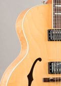 This 1999 Guild X-150 D is finished in Natural and built as a full-size hollowbody archtop. It features a full maple body, paired with a maple neck and an ebony fingerboard. The guitar is equipped with dual humbuckers, a floating bridge, and a trapeze tailpiece, with individual volume and tone controls for each pickup. Multi-ply binding rounds out the instrument’s clean presentation.
