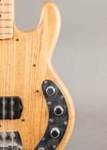 This 1977 Music Man StingRay in Natural is an early example of the model, featuring an ash body and a maple neck that contribute to a tight, defined low end and a clear, punchy attack. The original pickup and active preamp deliver a focused, immediate response with a strong fundamental and a present top end. The natural finish highlights the grain of the ash body, giving it a clean and understated look. The pickguard has been removed, opening up the appearance of the top, and shielding tape has been added to the control cavity. Overall condition is good for its age, with mild player wear visible across the body. It remains a solid early StingRay with its original design intent intact and only minor modifications.